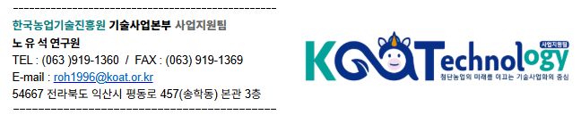 가. 사 업 명 : 2026년 농업기술 산학협력지원사업 나. 주관기관 : 농촌진흥청 다. 수행기관 : 한국농업기술진흥원 라. 신청대상 : 대학(산학협력단) 마. 주요내용 : 농업 신기술의 현장 실증 및 확산 지원 바. 공고기간 : 2025. 12. 24.(수) ~ 2026. 1. 23.(금) 14:00까지